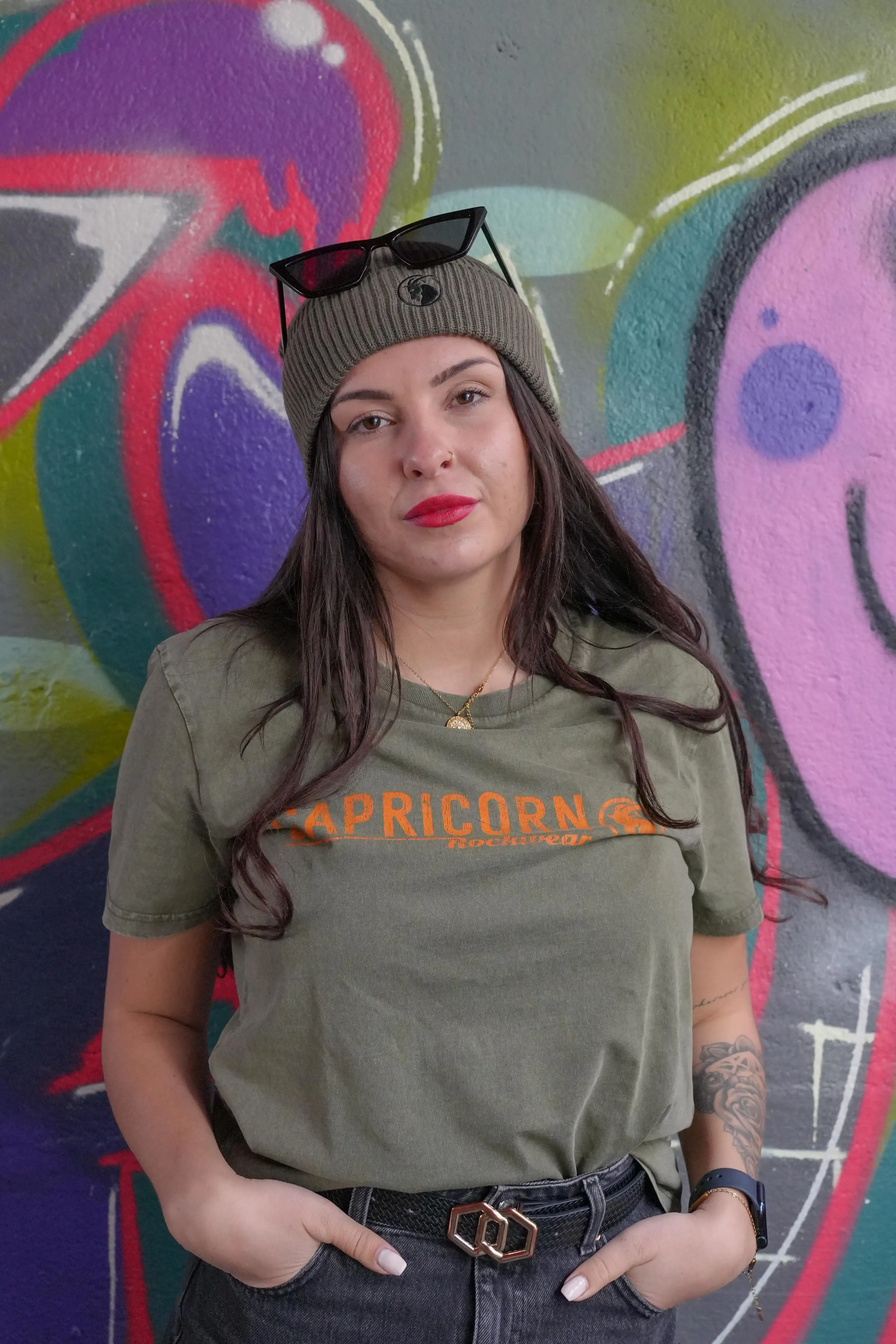 Diese Beanie wird nicht nur deinen Kopf warmhalten, sondern auch deinen Look auf das nächste Level heben. Die olivgrüne Farbe verleiht der Beanie eine zeitlose Eleganz, während der schwarze Steinbock auf der Vorderseite einen Hauch von Wildheit und Persönlichkeit hinzufügt.