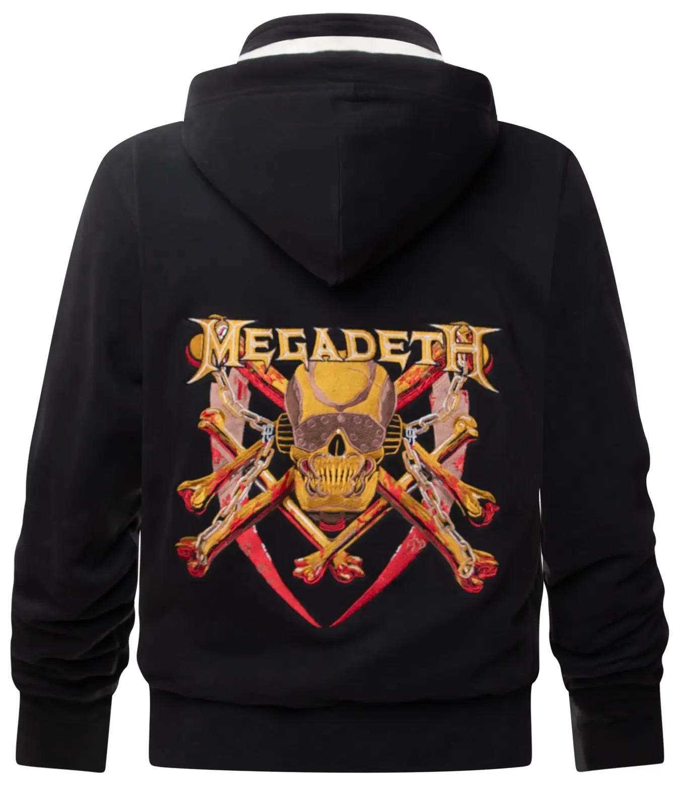 Diese hochwertige, schwarze Kapuzenjacke überzeugt durch ihr edles Design und ihre herausragende Verarbeitung. Auf der Vorderseite prangt das ikonische Megadeth-Logo in feinster Stickarbeit – dezent, aber edel.