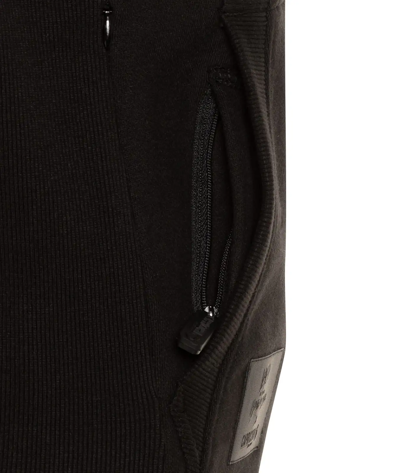 - Schwarze geprägte Ösen und schwarzer breiter YYK Reißverschluss mit Slayer Rubber Puller