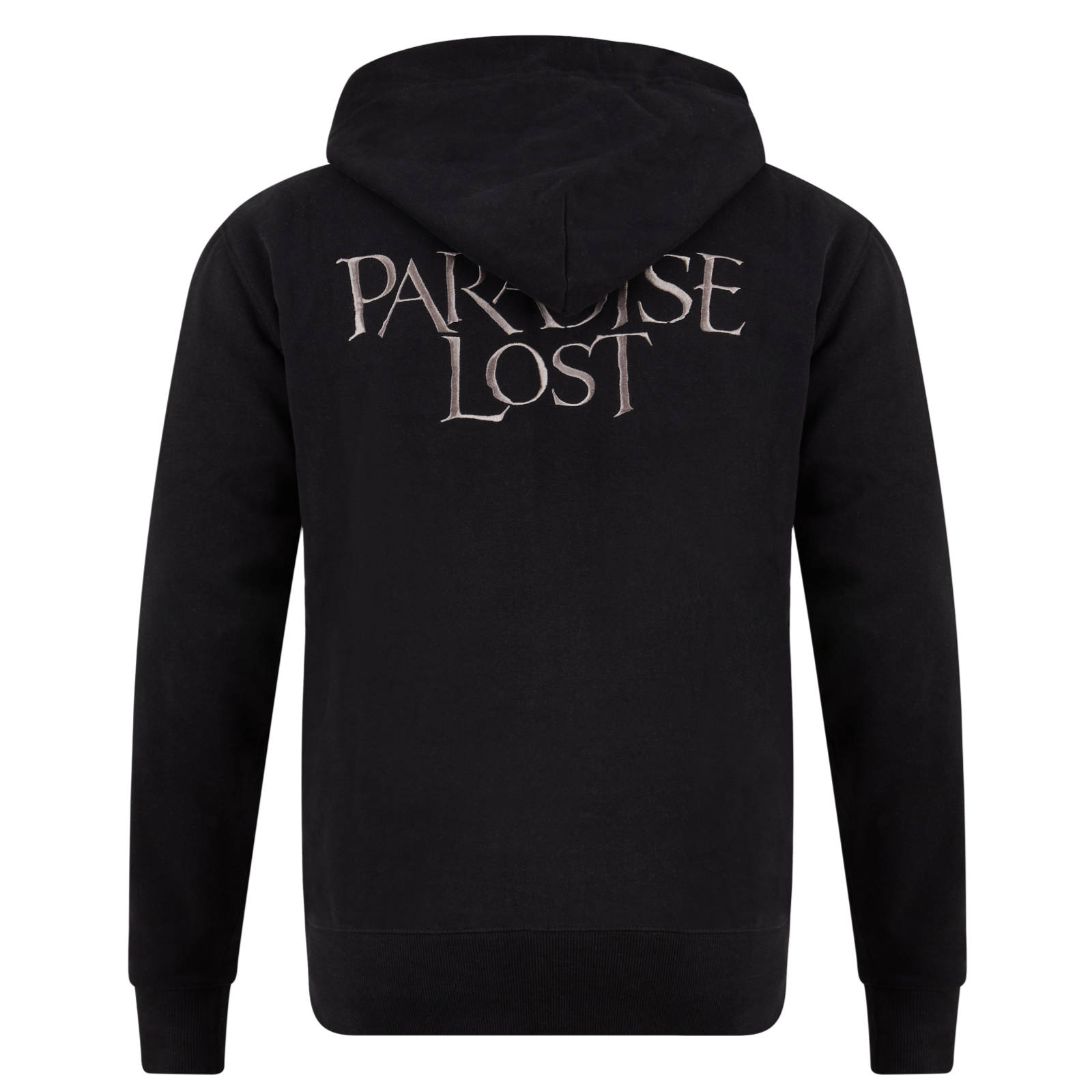 Die Paradise Lost kapuzenjacke wurde auf der Europa Tour 2023 verkaift und zeigt die klassischen Paradise Lost Logos.